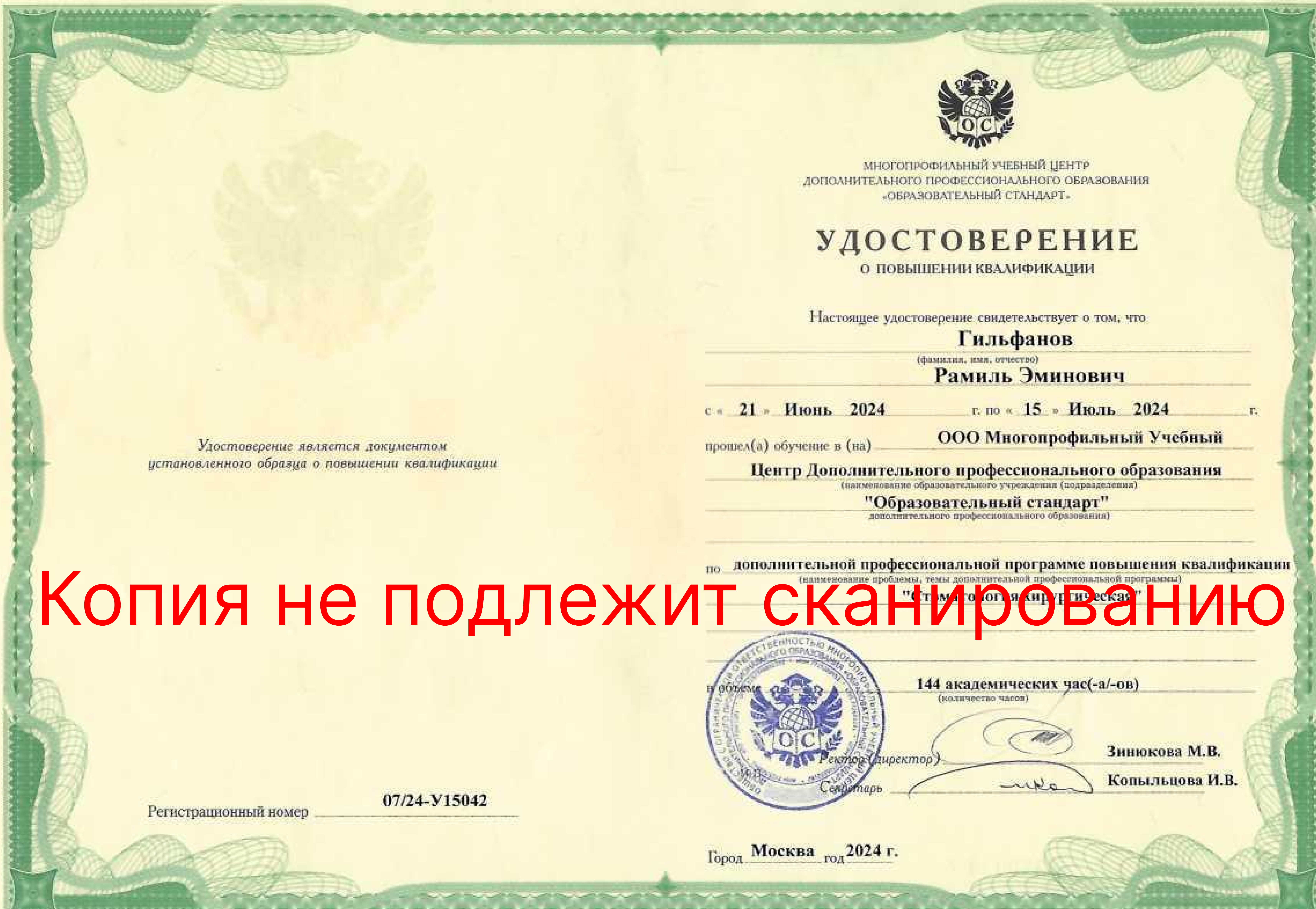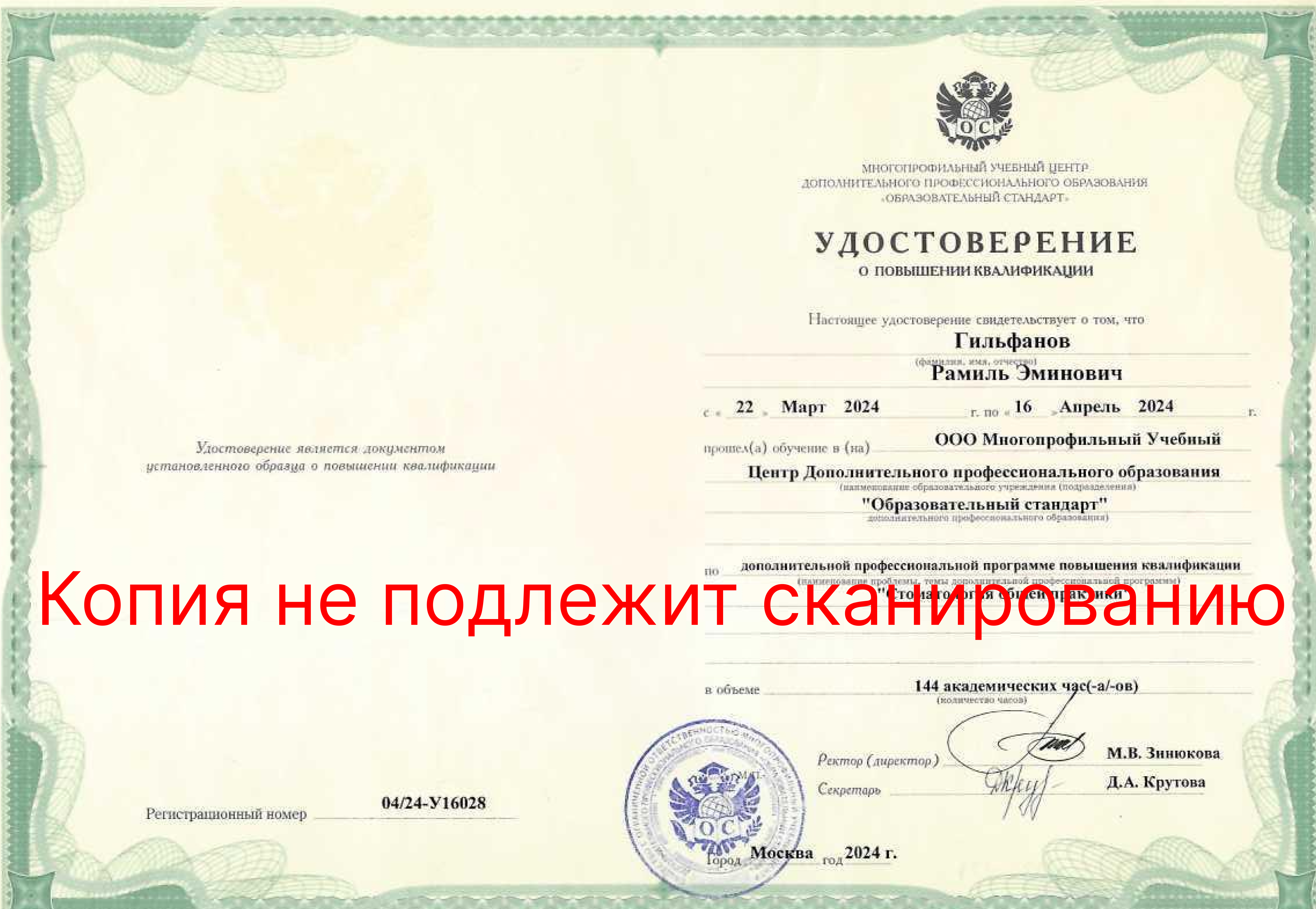 - 2024- Повышение специализации по стоматологии общей практики